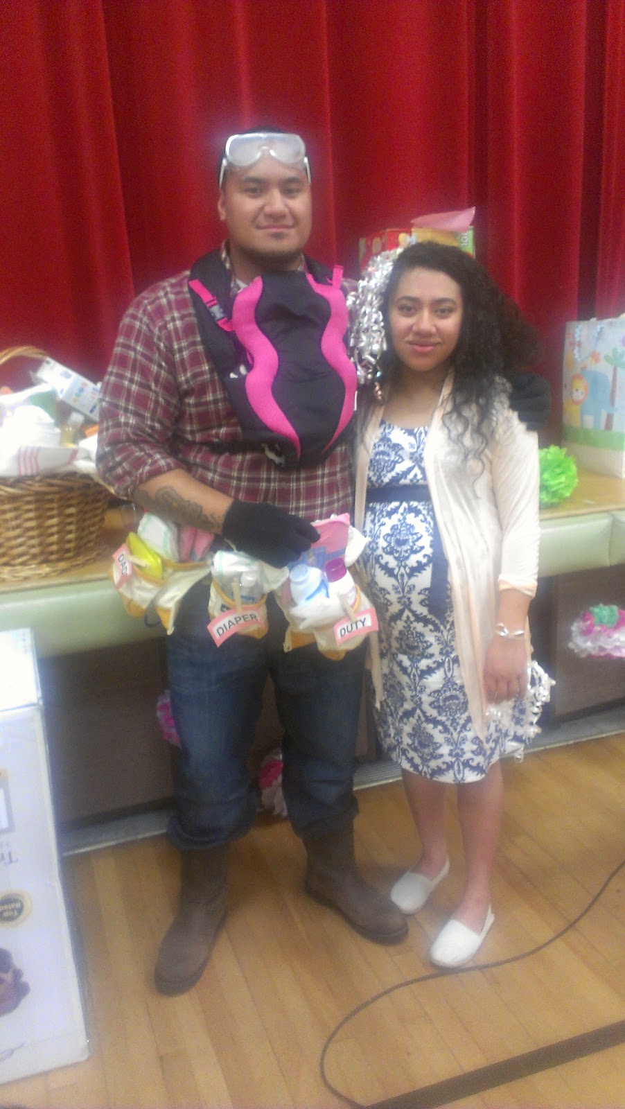 Suliana opened all her presents and this was the cutest gift there. Lola Marie and Sheena made if for Sau, it's the "Daddy Diaper Duty" tool belt with everything he needs to prepare him to change those diapers. Sau wore that belt the whole rest of the shower....and he was proud to wear it! Haha